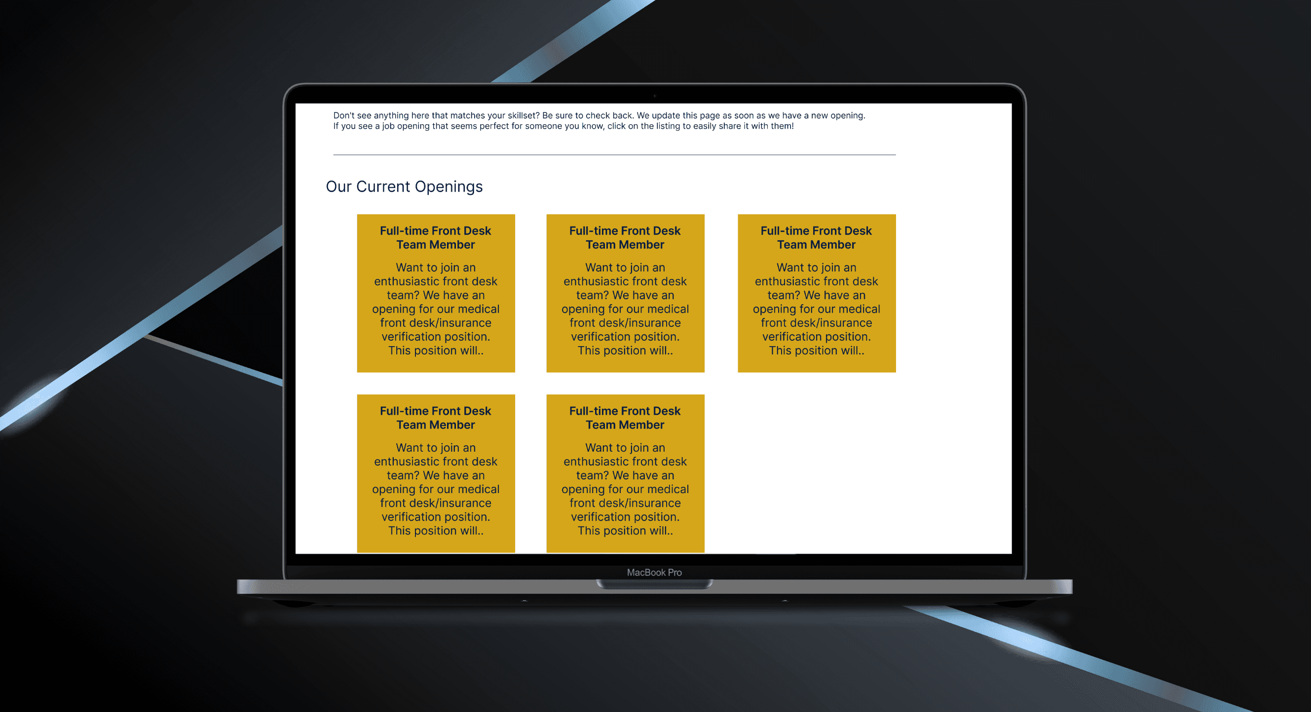 Staffing is often in progress during site development. To support recruitment, we included an easy-to-manage job listing section that centers can activate as soon as positions open—ensuring that the website supports hiring as well as patient care.