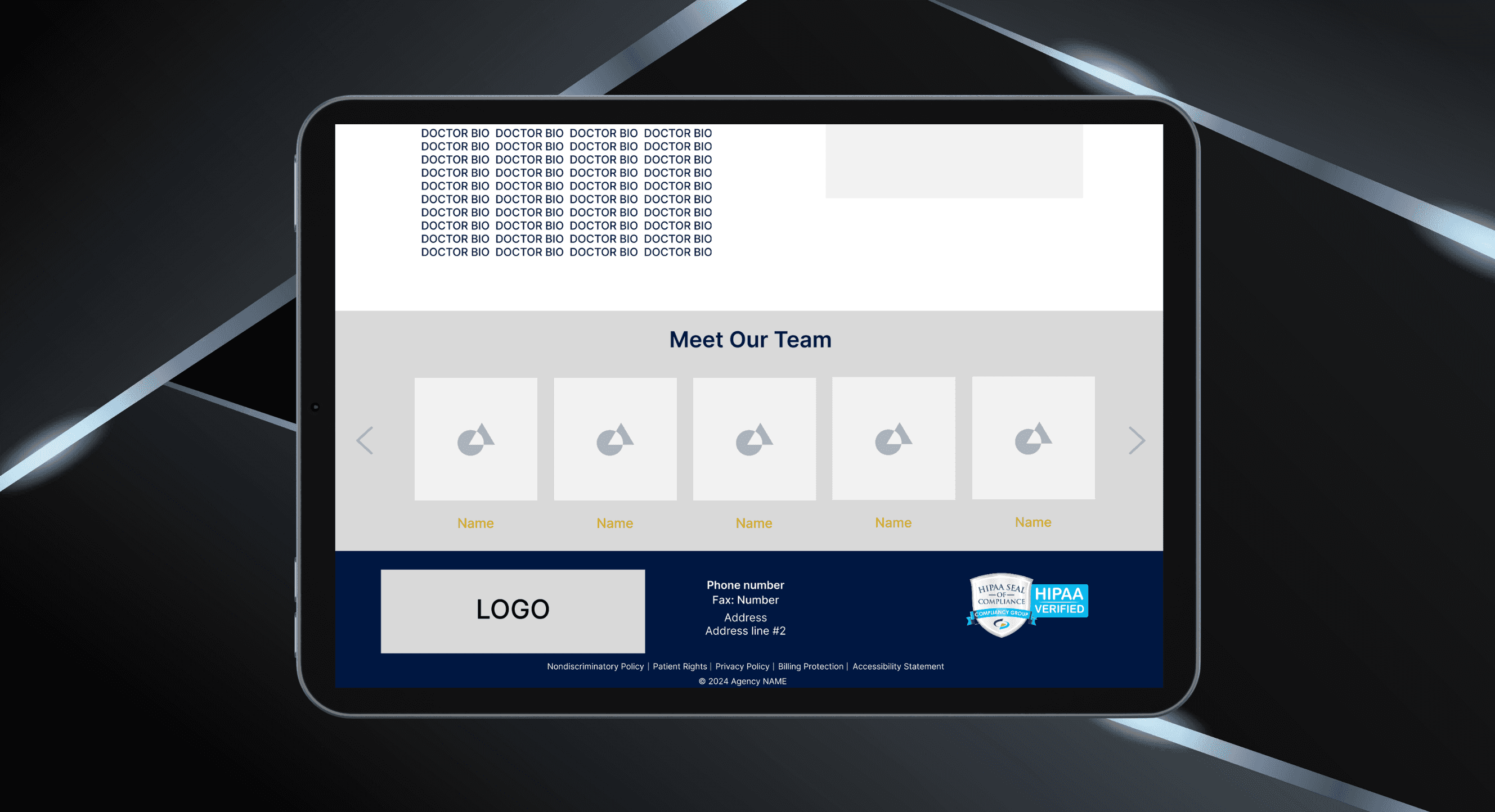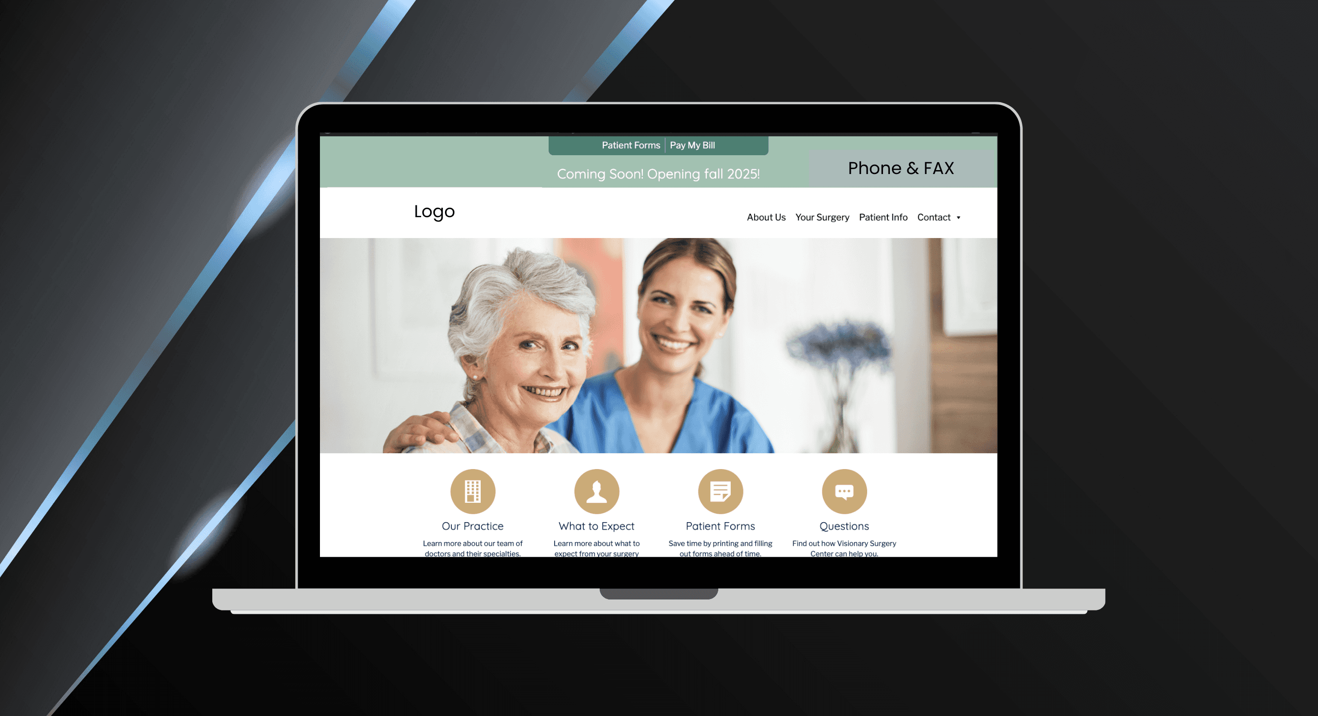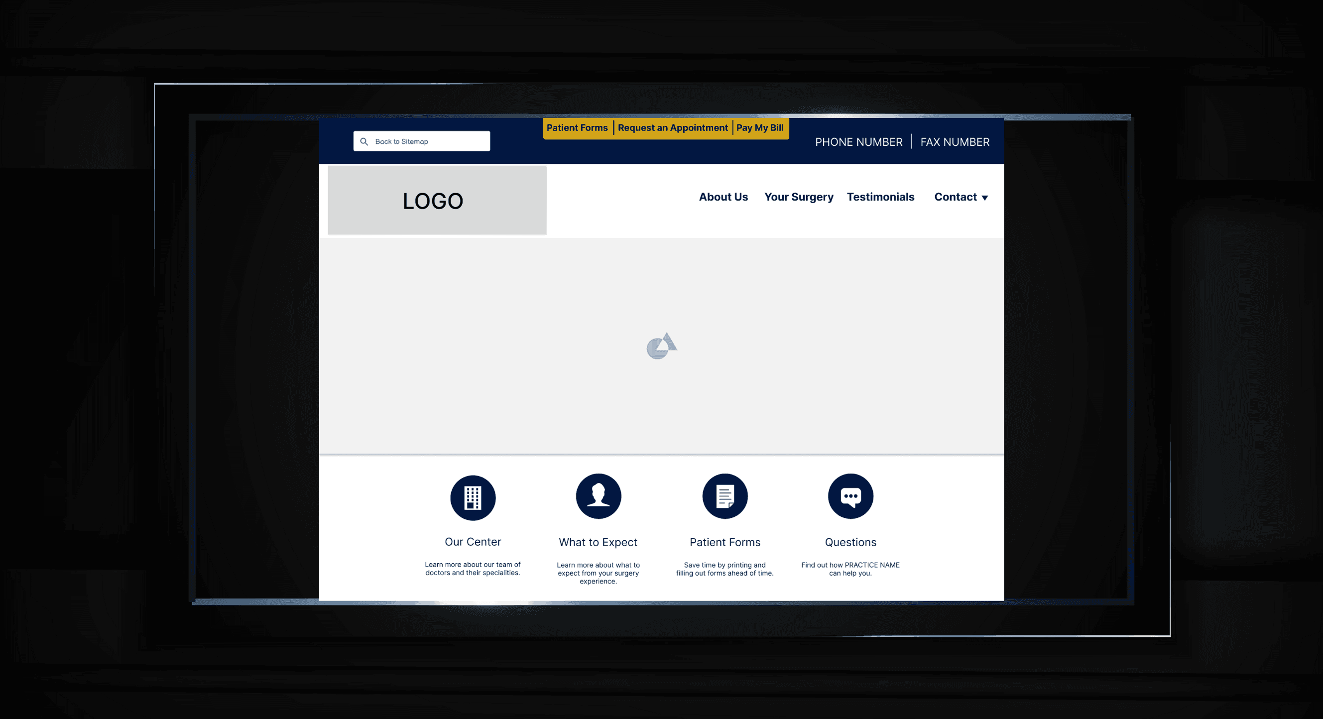 Many surgery centers are under construction during the website process. The template includes clearly defined placeholders for address and contact information, which not only acts as a guide for what’s needed but also helps stakeholders stay organized as the practice comes together.